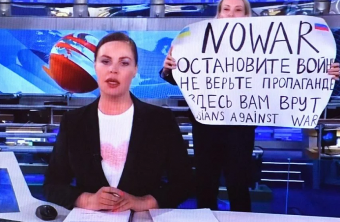 Presidenti i Ukrainës Voloymyr Zelensky falenderoi gazetaren ruse Marina Ovsianikova e cila ndërpreu edicionin e lajmeve në televizionin rus duke u shfaqur me një pankartë dhe video mesazh kundër luftës. “Personalisht dua të falenderoj vajzën e re, e cila hyri në studion e Channel One me një pankartë kundër luftës”, thotë Zelensky. Ai gjithashtu i
